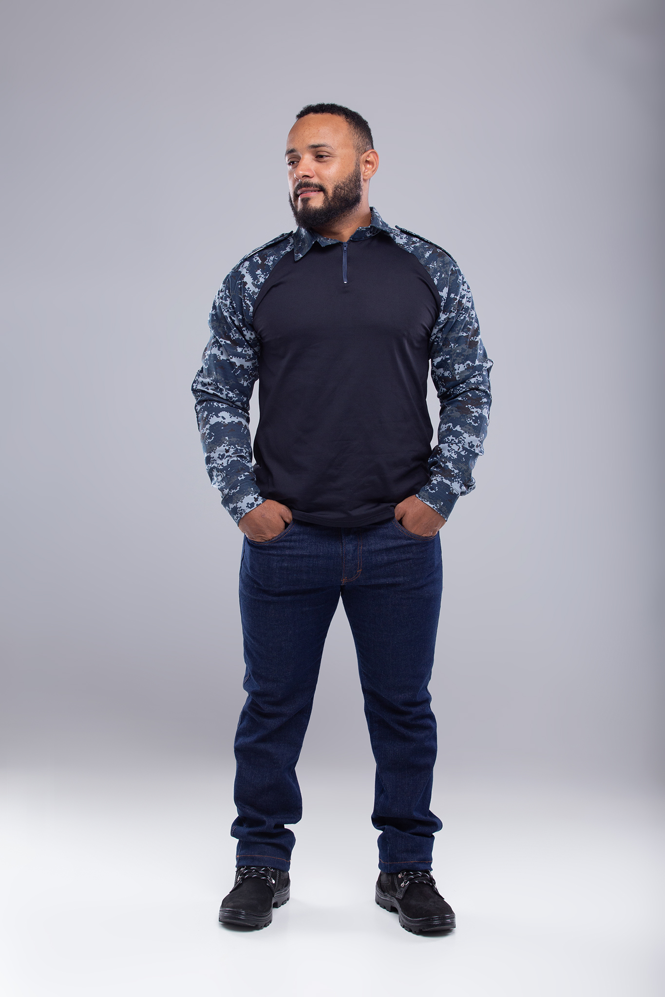Ideal para praticantes de ao ar livre, seja Airsoft, Paintball, trilhas, etc. Combina conforto e segurança com mangas e gola em tecido Ripstop e dorso em malha Dry Fit. Resistente à água, protege contra impactos e raios solares.